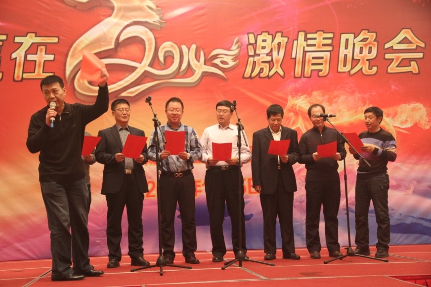 年終總結(jié)大會由副總經(jīng)理祝奕主持?偨(jīng)理孫學(xué)良和董事長趙劍平分別進(jìn)行了發(fā)言。